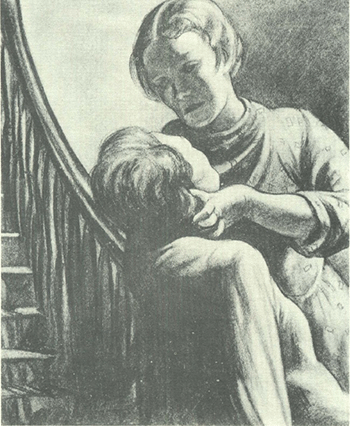 A、女子像往常一样,晚上独自一人等待丈夫归来