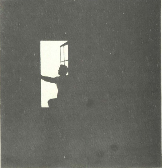 A、男人的背后是无底深渊,现在他尝试打开了天窗,寻找新希望的灵感